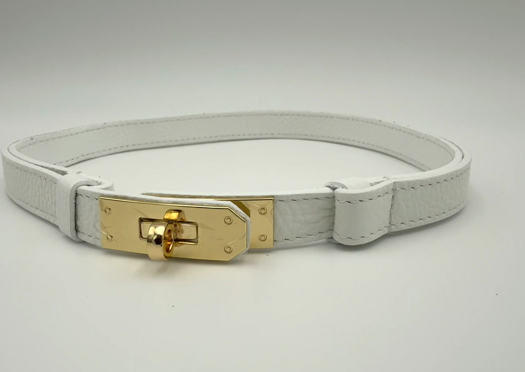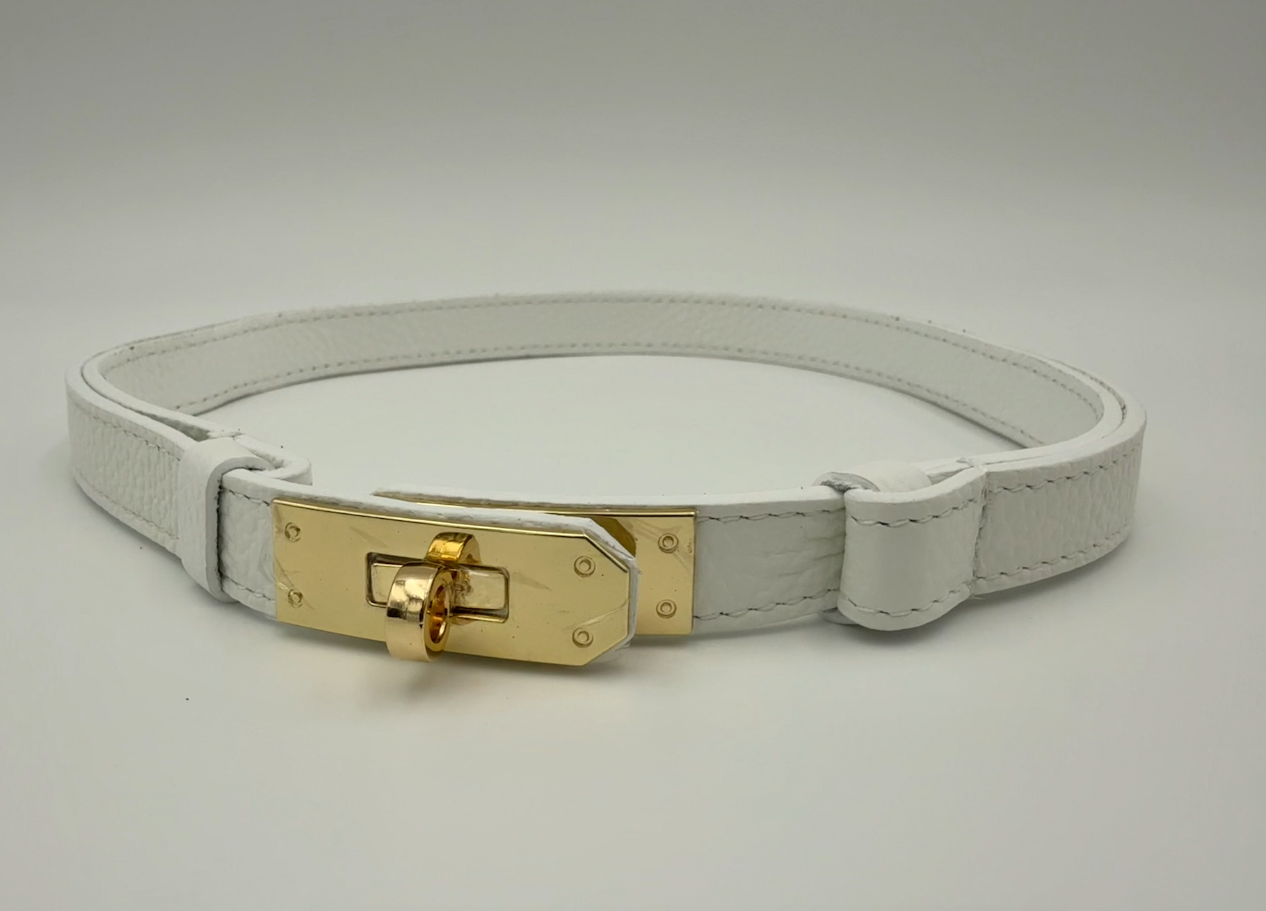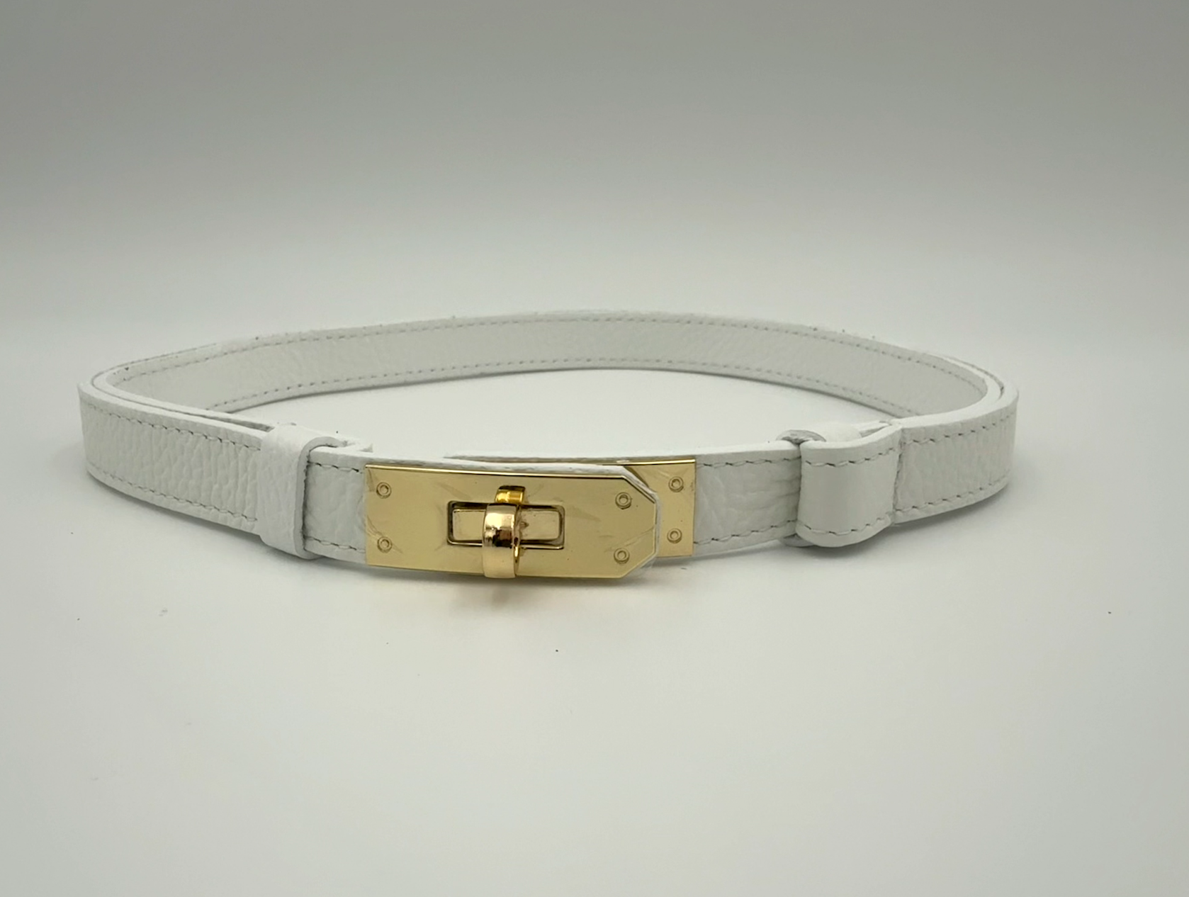 PASEK DAMSKI BIAŁY WĄSKI DO SPODNI SUKIENKI KLAMRA ZŁOTA UNIWERSALNY