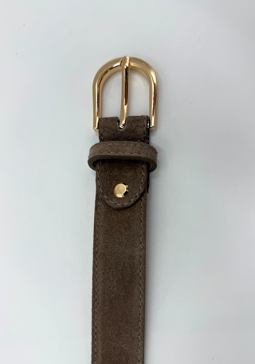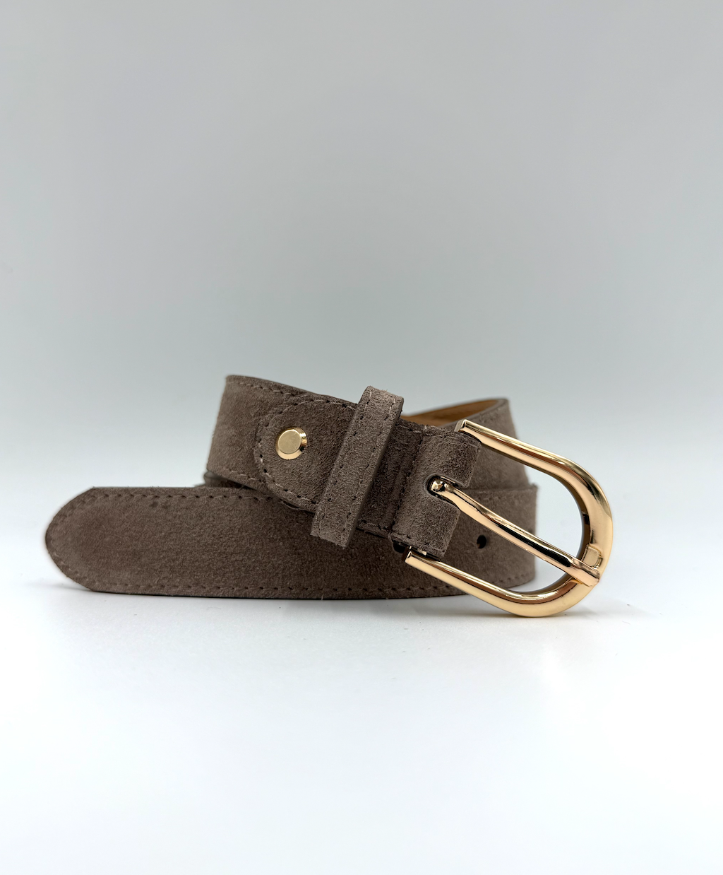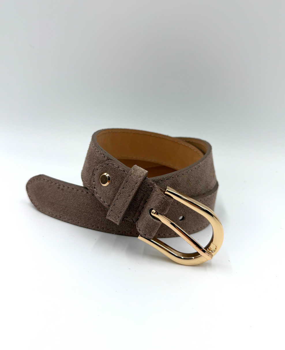 Pasek damski Vera Pelle z włoskiego naturalnego zamszu – złota klamra (jasnobrązowy)