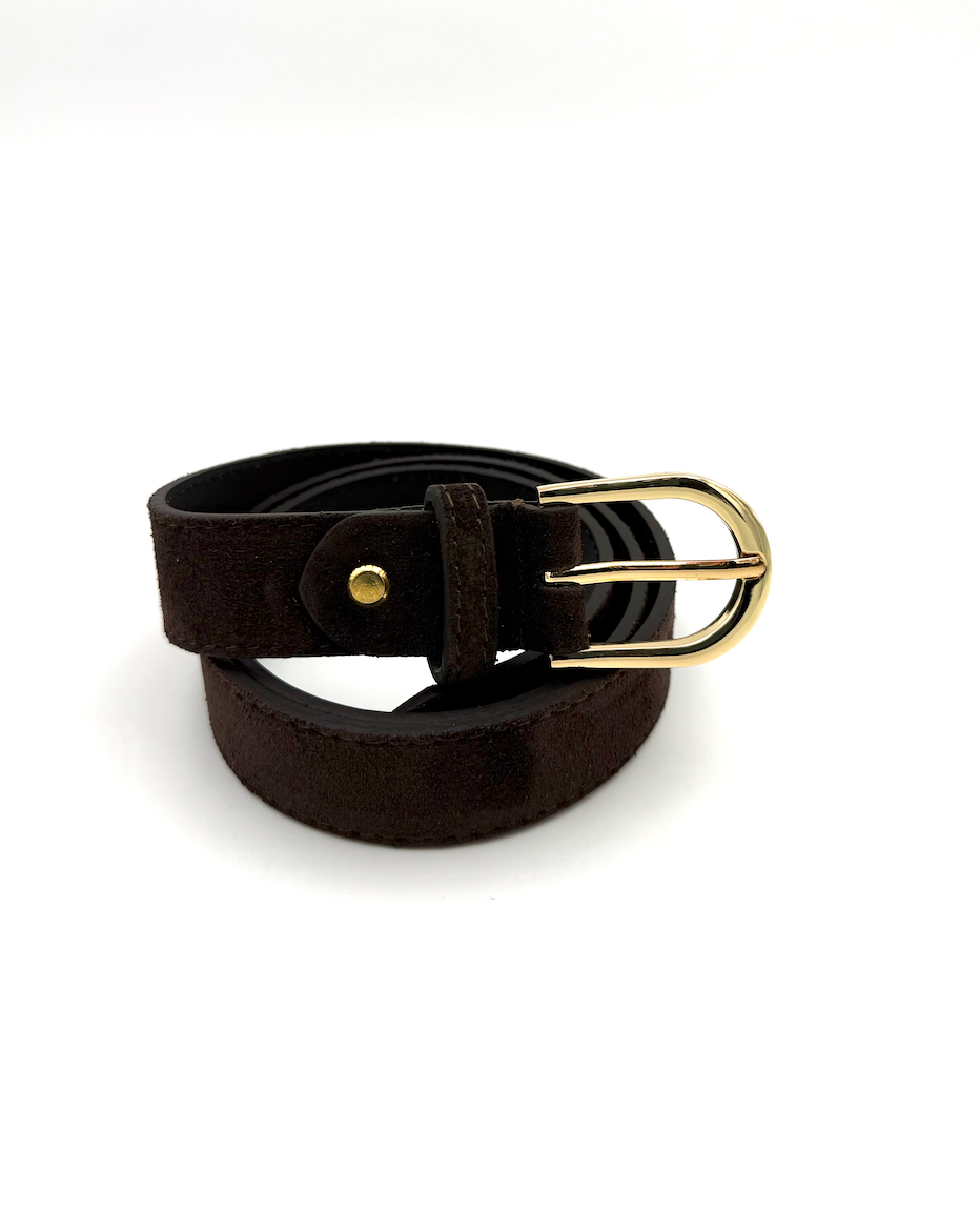 Pasek damski Vera Pelle z włoskiego naturalnego zamszu – złota klamra, brązowy