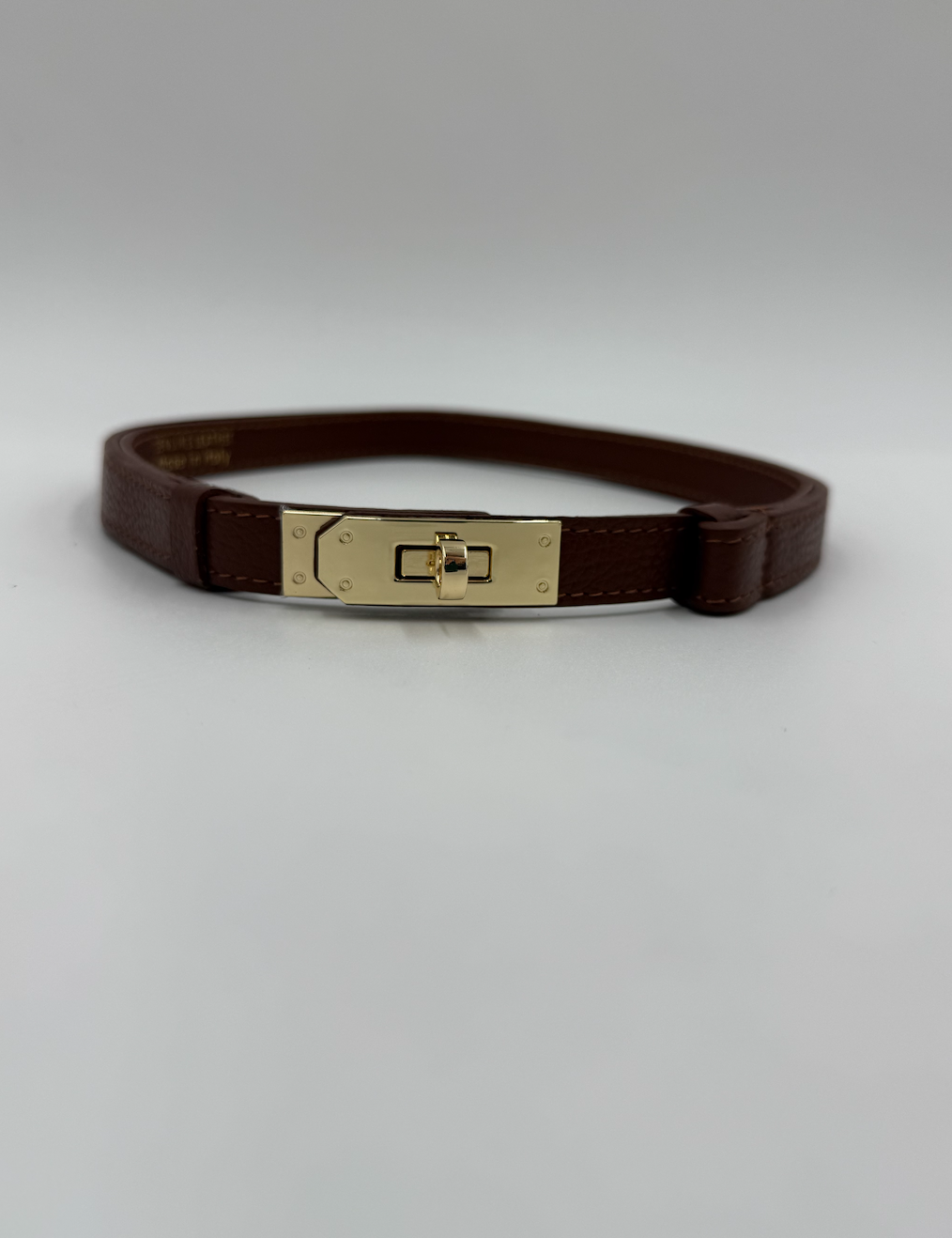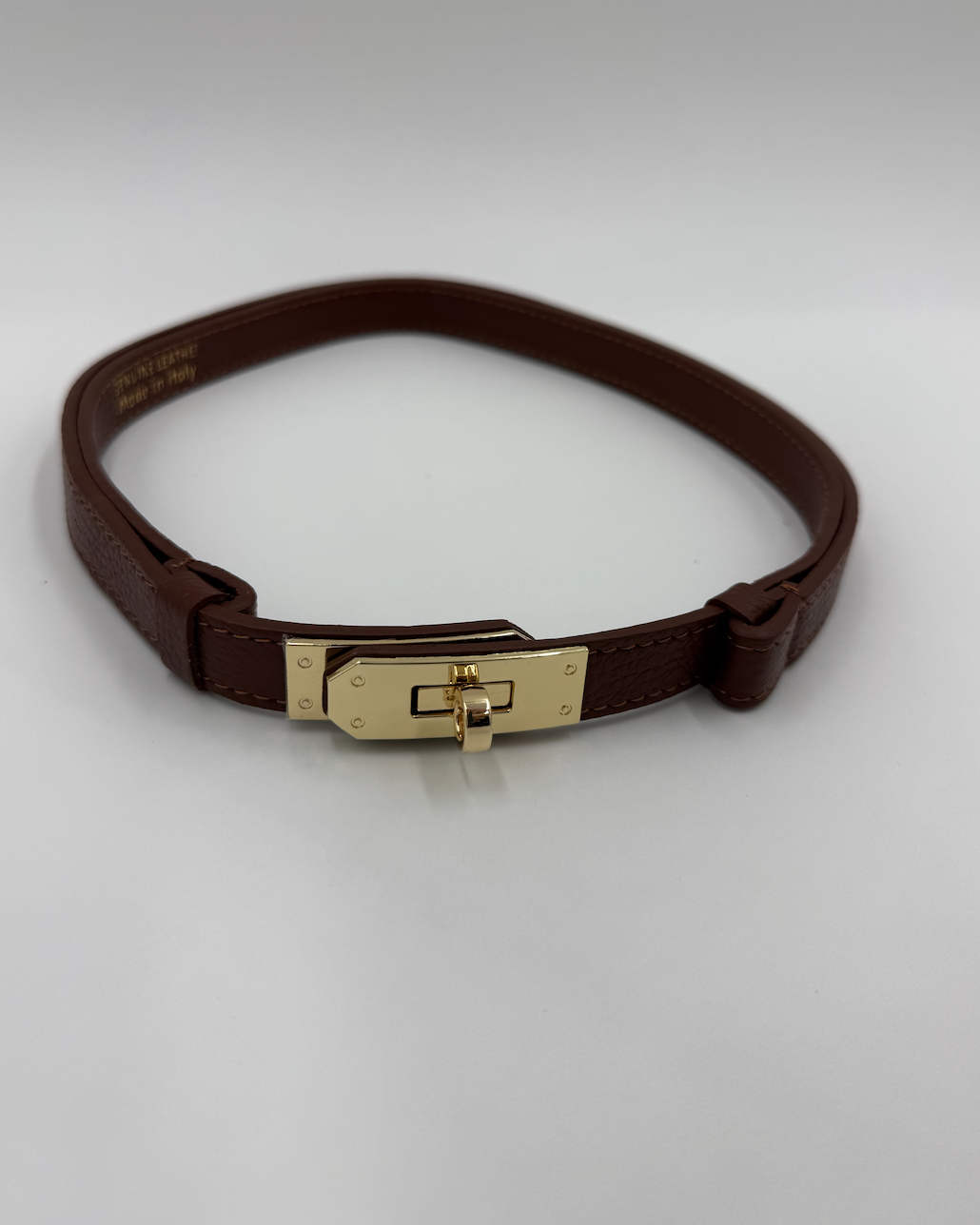 Miele to stylowy i ponadczasowy pasek damski wykonany z najwyższej jakości naturalnej skóry w eleganckim brązowym . Miękka skóra oraz złote okucia nadają mu wyjątkowego charakteru i luksusowego wyglądu.