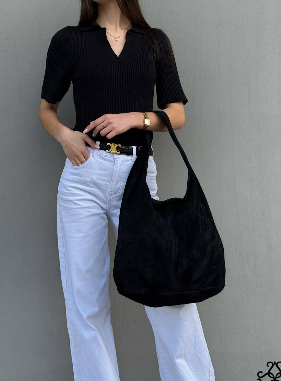 Pojemna shopperka z miękkiego, naturalnego włoskiego zamszu. Klasyczna, modna sylwetka i praktyczne zapięcie na zamek sprawiają, że to idealna torba na co dzień: do pracy, na uczelnię i na miasto. Czarny zamsz pięknie się układa, a solidne wykończenie gwarantuje wygodę i trwałość.
