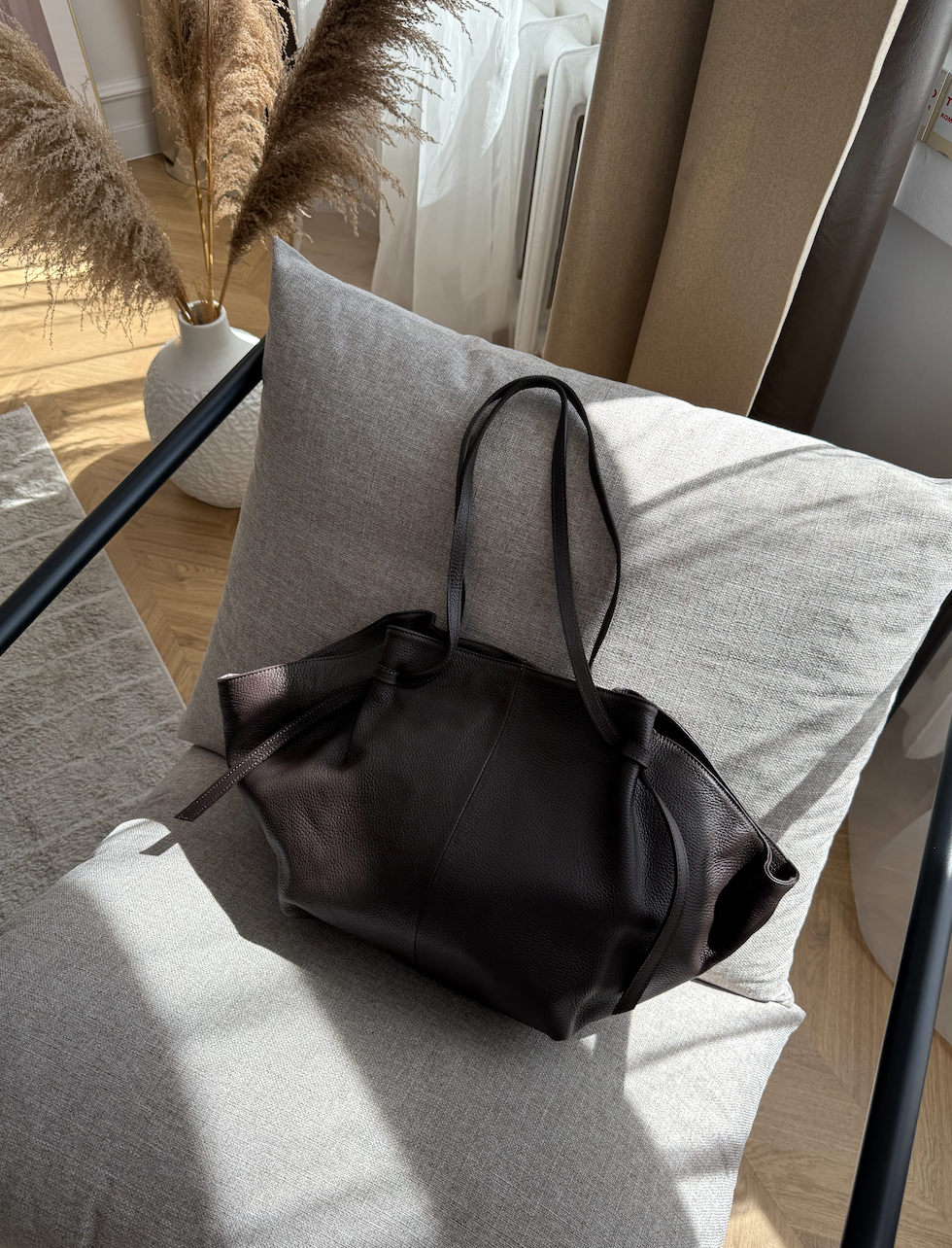 Torebka damska z naturalnej włoskiej skóry – pojemna i elegancka, brązowa