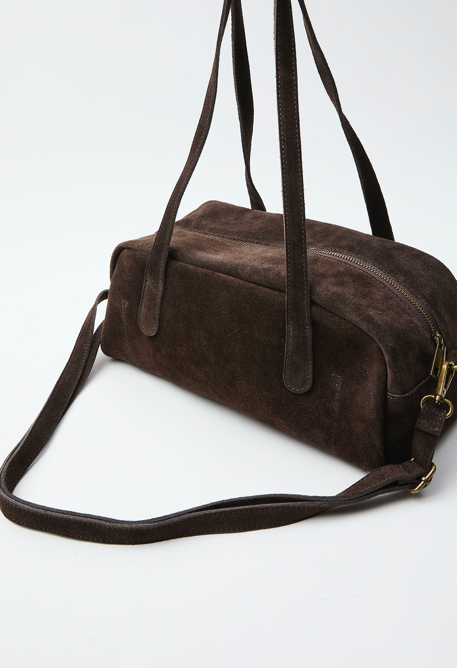 Stylowa torebka wykonana z miękkiego, przyjemnego w dotyku naturalnego zamszu (Włochy). Klasyczny brąz i złote okucia dodają elegancji, a dodatkowy długi pasek pozwala nosić ją wygodnie na ramieniu lub crossbody. Idealna na co dzień – łączy lekkość, modny wygląd i funkcjonalność.