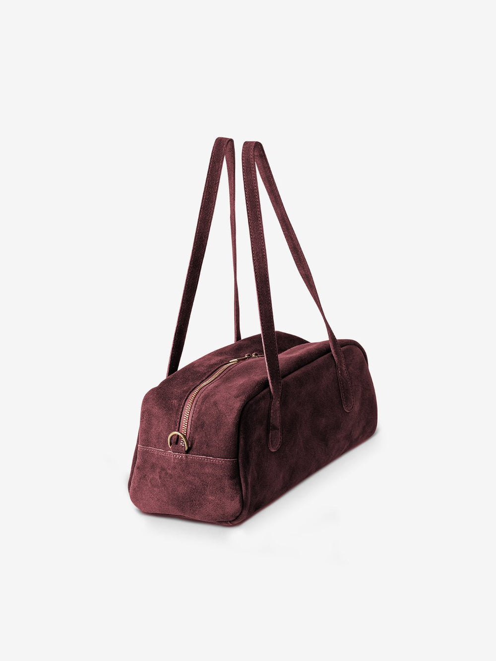 torebka zamszowa bordowa, włoski zamsz, trend sezonu, naturalny zamsz, złote okucia, długi pasek, Made in Italy, torebka na ramię, torebka crossbody.