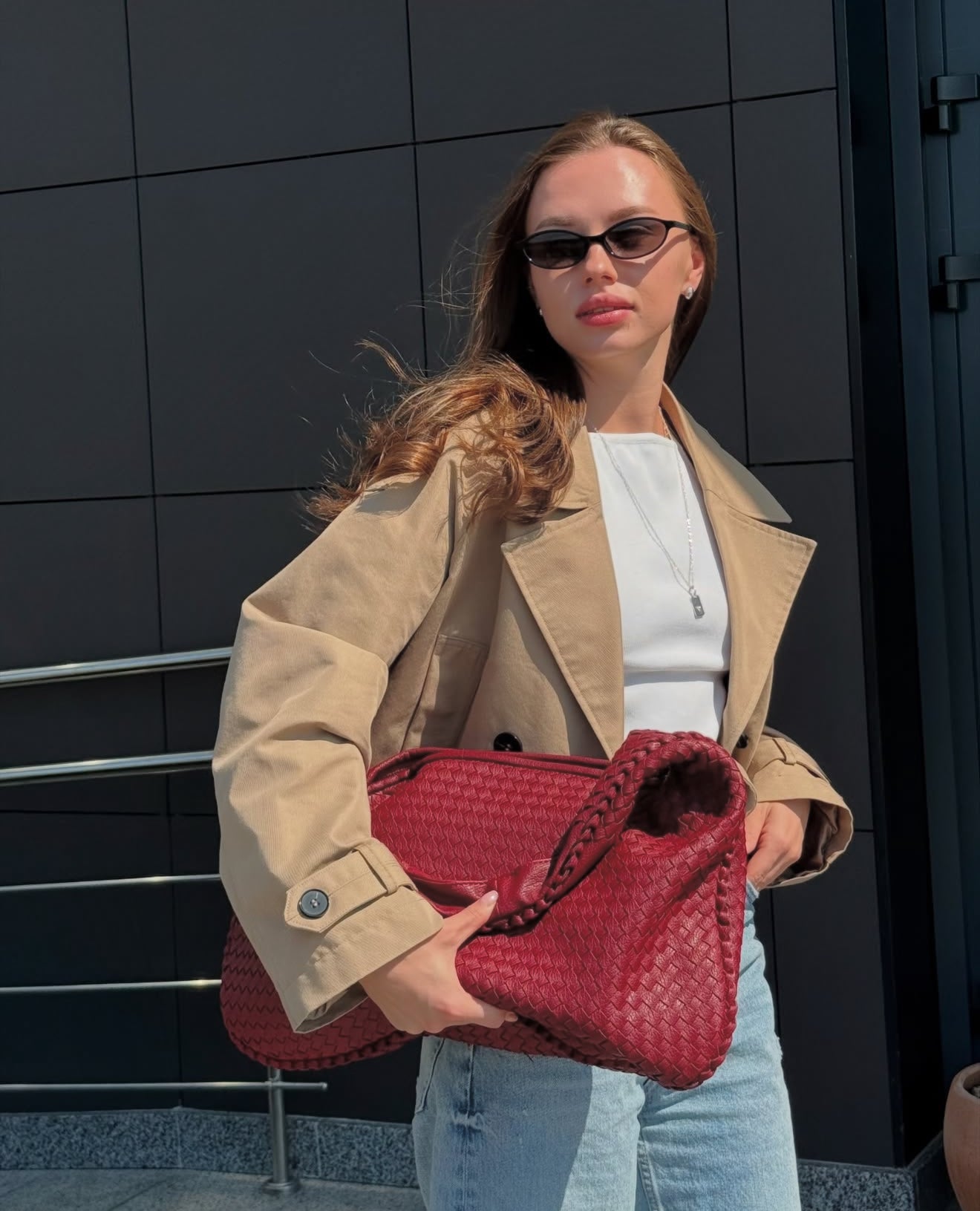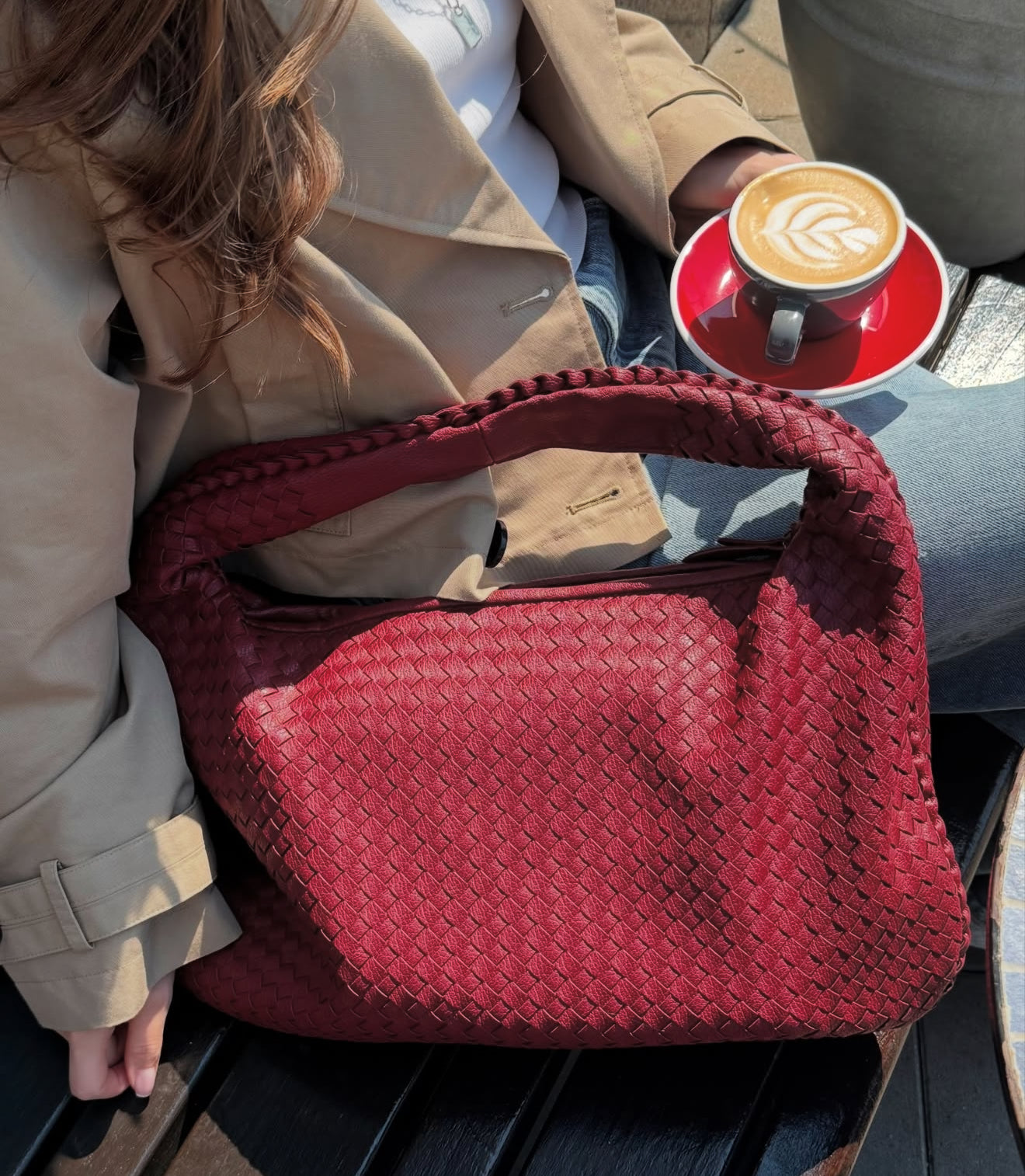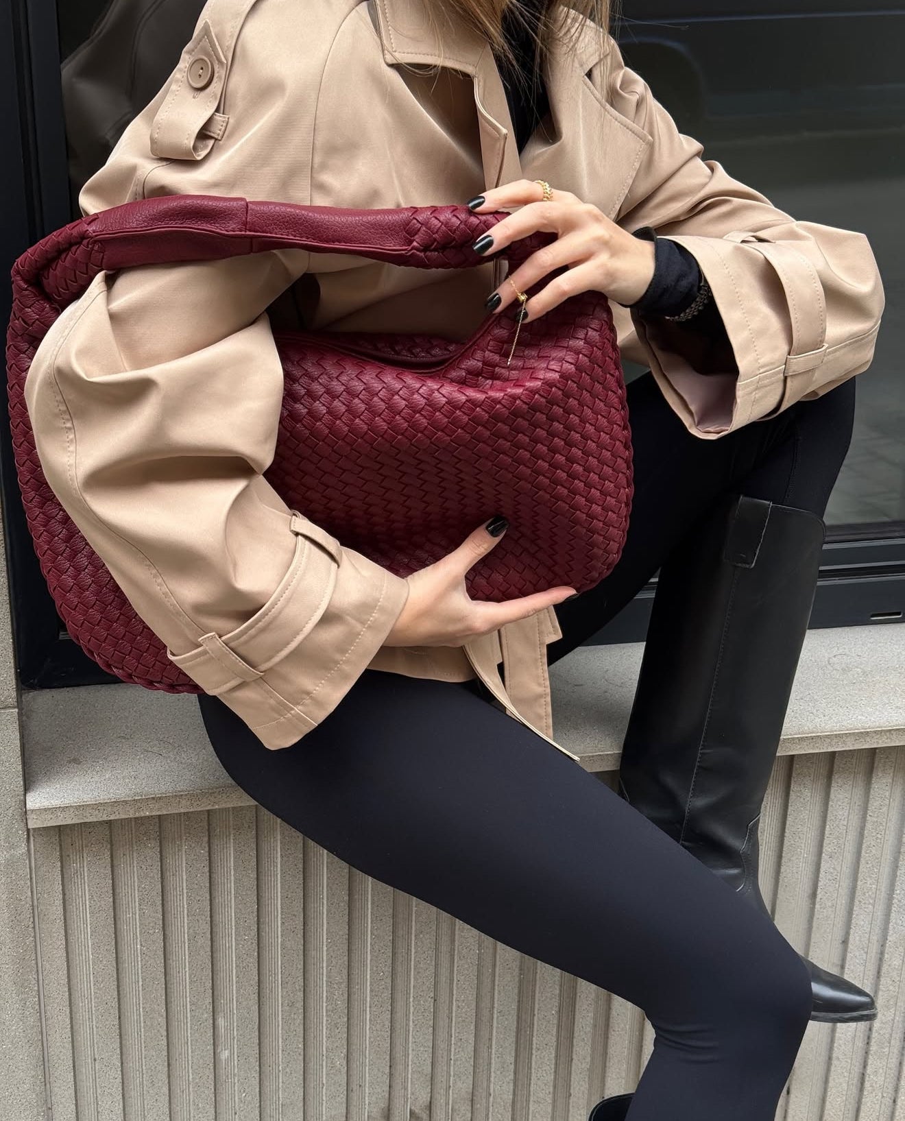 Torba hobo – pleciona, wegańska skóra, kolor burgundowy