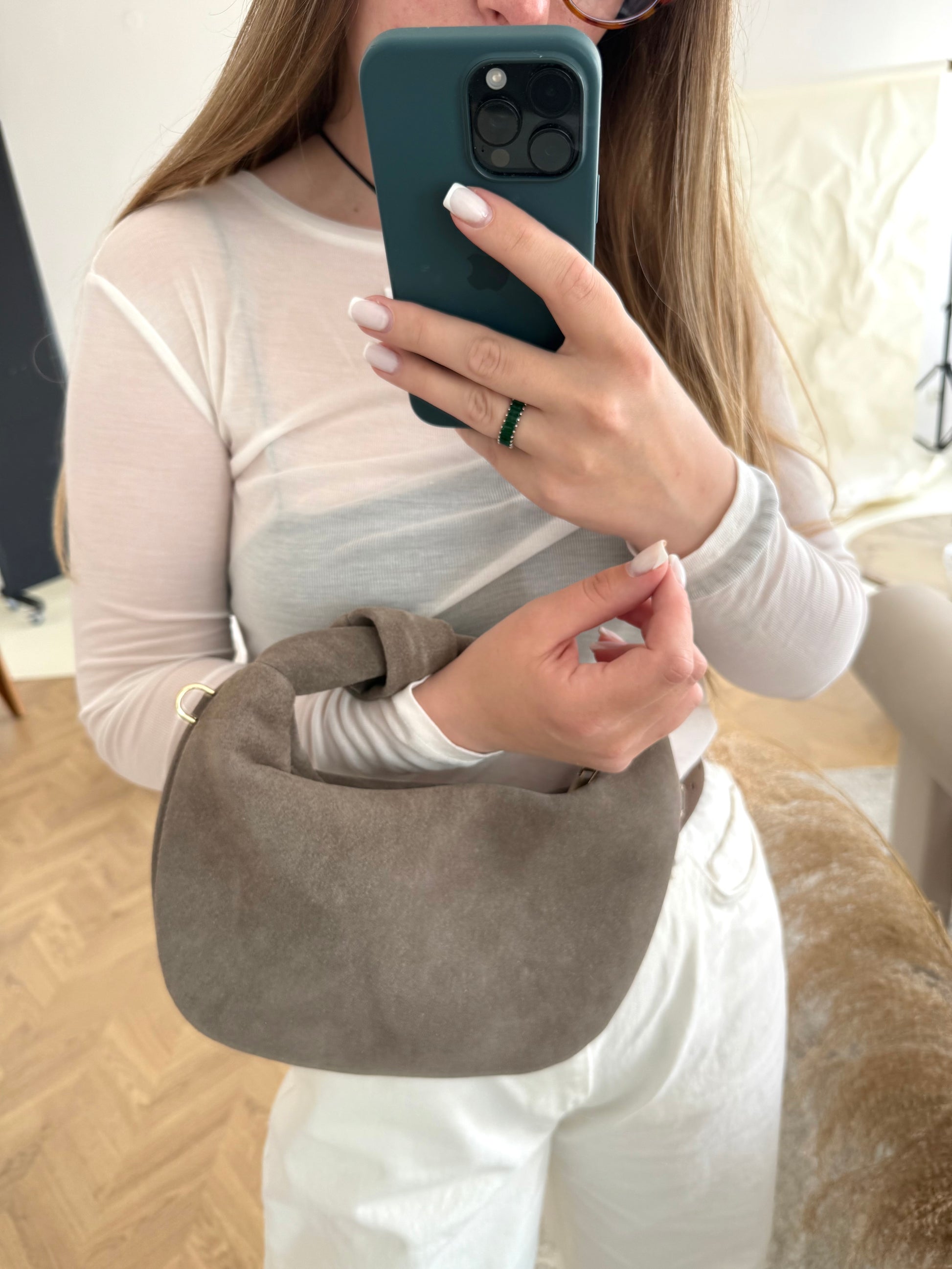 Materiał: naturalny zamsz